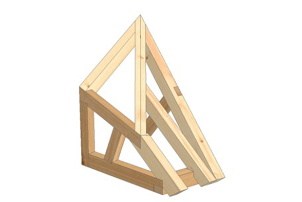 Die Aufgabe hatte es in sich. In 390 Minuten mussten insgesamt zwölf Einzelteile „erschiftet“ und ausgearbeitet werden. Konkret handelte es sich um ein Model mit einem Krüppelwalm. Die Traufe des Krüppelwalmes war geneigt, dadurch bedingt mussten die Kerven des Gratsparrens und Schrägsparren steigen. An die geneigte Pfette des Krüppelwalmes schloss ein Schrägsparren mit Klaue an. Die Schifter, die an den Gratsparren anliefen, wurden auch mit einer Klaue ausgebildet. Der Anschluss der Strebe an den Pfosten musste ebenso mit einer Klaue hergestellt werden.